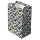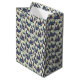 This gift bag features evergreen and winter-bare hardwood trees in the snow, surrounded by snowflakes. Lovely retro-looking design, reminiscent of the 1950's and '60s.
