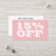 Elegant Trendy Pastel Pink Modern Discount. Thank you order packaging insert coupons for your customers. Personalise all text and colours in this discount card template.