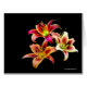 The daylilies I have been waiting all summer for: a a trio of yellow and pink beauties isolated on a black background. Photographed in mid-July 2018 at a private garden at sunset.