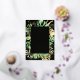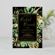 This modern tropical bridal brunch invitation features green and gold palm, philodendron, and fern leaves on a black background. An elegant gold foil frame highlights the gold foil text. Gold foil splatters accentuate this exotic botanical design and brings a bit of sophisticated whimsy to the invitation. This island oasis invite is perfect for any elegant outdoor, beach or tropical themed bridal shower brunch.