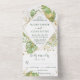 Elegant Tropical Emerald Green & Gold Wedding All In One Invitation