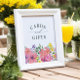 Guide your guests with style using our Elegant Tropical Flowers Cards and Gifts Sign. Featuring vibrant yellow, purple, and pink tropical flowers, this design adds a cheerful and sophisticated touch to your celebration. Perfect for weddings, bridal showers, or tropical-themed events, it directs guests effortlessly while complementing your décor. The bold floral accents and elegant typography make it both functional and visually stunning. A beautiful addition to your gift table that enhances the festive atmosphere!