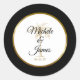 Customise these elegant black, white and gold stickers with your own special touch. This modern design features the bride and groom's names and wedding date, an artistic golden palm tree and gold foil rim over a black background. If you need help or matching items, please contact me.