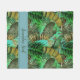 Elegant tropical green leaves yellow blue pattern fleece blanket. Modern, beautiful trendy pattern that will brighten any work space.