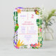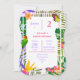 This elegant Birthday party invitation has a pretty Summer tropical pattern with green palm fronds and monstera leaves. Bird of Paradise flowers in orange, blue and purple hues and are dotted in between a handsome parrot and delicate butterflies. You can easily change the Name, Age and other party details by clicking the "Personalise" button.