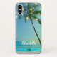 Personalise this elegant cell phone case featuring a tropical Hawaiian beach and romantic palm trees and string lights with your own name. Easy to customise with your own text. This cell phone case is a great gift for the beach lover, Hawaii lover, or tropical traveller! Photograph and design © by TK Goforth and signed by the artist, all rights reserved. Other items with this design can be found in my Tropical Beach and String Lights Collection and my Zazzle store and you may also transfer this design to other products by clicking the link below the image:
