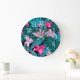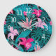 Elegant Tropical Hibiscus Flowers and Leaves | Large Clock