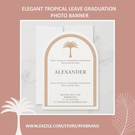 Celebrate in style with this Elegant Tropical Leave Graduation Photo Banner. design. Featuring a stunning full-image layout, this card is fully personalised with the graduate's name, graduation year, and both the school they completed and the school they will be attending next.