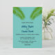 This elegant beach wedding invitation is perfect for a modern summer seaside wedding. The romantic design features green palm leaves with elegant black typography on a teal background.