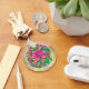 This vibrant round keychain features a stunning 3D-style digital illustration of a lush tropical bouquet. With a central bright pink lily surrounded by delicate hibiscus and verdant ferns, the design pops against a shimmering faux-gold wood grain border.