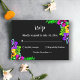 This elegant tropical wedding RSVP Card is perfect for a modern summer wedding. The simple design features bloom yellow, purple, and pink flowers with elegant white typography on a bold black background.