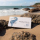 An elegant watercolor seahorse in a subtle palette of shades of blue and light pink adorns this beautiful coastal tropical-themed business card.
