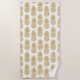 Elegant Tropical White Gold Pineapple Pattern Beach Towel