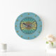 Chic wall clock done in a turquoise damask background. Elegant graphics of gold studs represent the numbers, around the edge, and a lovely colourful Art Deco style circular decoration in the middle of the clock. Customise to add text. Lovely clock for any room of the house or office.