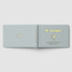 An elegant wedding guestbook in real gold, rose-gold, or silver foil against a turquoise blue background for your guests to sign. A lovely keepsake for lasting memories of your dream wedding. Easily personalise the front and back with your details to make it your own.