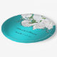 These delightful disposable plates feature a charming design perfect for your springtime or garden wedding. The vibrant turquoise background adds a touch of whimsy and romance, while a delicate garland of white roses adorns the top edge, symbolising purity and love. Make your wedding truly unforgettable with the option to personalise these plates with the happy couple's names and wedding date. This thoughtful detail adds a special touch and creates a lasting keepsake for your guests.