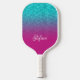 Elegant Turquoise Glitter Hot Pink Ombre Name Pickleball Paddle