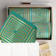 Decorative, elegant and glamourous turquoise and gold tissue paper featuring shiny gold squares intricately linked to produce a captivating 3D illusion.