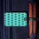 An elegant turquoise and black pattern decorates this fun luggage tag. Customise this luggage tag by changing the monogram letters to suit your needs. The design is from original art.