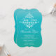 Beautiful unique & elegant turquoise blue ombre baby shower invitation featuring a contemporary white damask floral leaf flourish for a gender neutral baby shower. Available in our shop in a large selection of modern colour choices. Easy to personalise with your party information and guaranteed to make a perfect first impression. An Elegant baby shower invitation for a girl baby shower or baby boy baby shower.