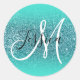 Elegant Turquoise Ombre Faux Teal Glitter Monogram Classic Round Sticker