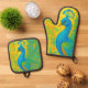 Elegant Turquoise Peacock Bird Decorative Oven Mitt & Pot Holder Set