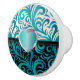 Elegant Turquoise, White and Black Floral Swirls Ceramic Knob