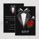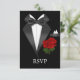 Elegant Tux & Rose Black Tie Party RSVP Card