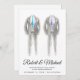 Elegant and chic gay men wedding invitation with two grey tuxedo watercolors with teal blue and purple accents and your first names in a stylish script. On the reverse side, add all of your wedding details in modern typography.