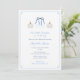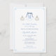 This design features a single letter initial monogram crest with dark blue ribbon bow, flanked by white watercolor pumpkins and a light blue Greek Key border. The reverse is a light blue and white Greek Key print. These watercolor elements on the front were originally hand-painted by me. I've set the template up for a baby shower but all of the text fields are customisable to your needs. You can change the contrast colour of the Greek Key border on the front and the pattern on the back (shown here as a pale blue) to any colour you like by entering the design tool (underneath the text customisation area, click to "customise further") then changing the background colour on each side.