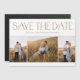 An Elegant Typography 3 Photo Collage Wedding Save the Date with modern type and simple layout on the front. The back is a magnet. Click the edit button to customise this design.