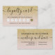 A modern, stylish loyalty card for hair and makeup artist business card with modern hand lettering style brush typography in white on a trendy faux yellow gold glitter and pastel blush pink trendy and elegant background. If you need any customization, don't hesitate in contacting me
