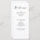 This stunning wedding program features deep green calligraphy along with modern black text, on an elegant white background. Perfect for a formal, traditional wedding with a modern spin!