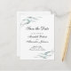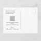Flowing pastel green eucalyptus leaves frame the text on front of our white wedding Save the Date postcard. We've chosen an elegant script font for the important details your recipients need to know. On back of the card is a QR scan graphic you can replace with your own QR code (or delete) plus the URL for your wedding website. Text on front and back of this card can be easily revised with your upcoming wedding information.