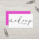 Elegant typography script "makeup" with custom name on the front and a modern elegant layout on the back with sans serif font. This card comes in a variation of colours so choose the one you prefer or contact me through my store for further personalisation of custom script or colours.