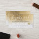 A modern, stylish loyalty card for hair and makeup artist business card with modern hand lettering style brush typography in white on a trendy faux yellow gold foil metallic and white marble trendy and elegant background. If you need any customization, don't hesitate in contacting me