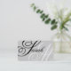 Minimal colours of black, white and grey. An elegant typography script of first name that overlaps the last initial on the front.