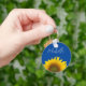 Monogram keychain with a yellow sunflower and a dark blue background. With elegant white typography script, you can personalise with your own name. A lovely accessory for your keys or a lovely gift for someone special.