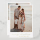 Modern and minimalist style photo Christmas Card featuring a simple design with your favourite vertical photo on the front with "Merry Christmas" in an elegant script typography along with your family name and the year below. All text on the front is in real gold foil. The back has a second picture along with your personalised message below.