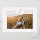 An Elegant Typography Photo Wedding Save the Date with full bleed photo, modern type and simple layout on the front. The back has an additional photo with more details. Click the edit button to customise this design.