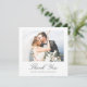 This simply chic custom photo wedding thank you card features an elegant, minimalist, modern design with a classic, timeless flair. The front features your names under your favourite photo and a 'Thank You' message conveyed in a graceful, flowing handwriting font. All of the text is fully customisable, so you might change the colour of the 'Thank You' or the names text when you edit the front to show your own names. And while we've included first names and a last name in our sample text on the front, you might choose to use only your first names, or a a 'Mr. and Mrs. ......' format, etc. On the front we've set the background as transparent, so that the colour of the paper will simply serve as the base colour. You can choose a colour for the background if you prefer. The default text colour on both sides is a dark grey, but you can change this to black or any other colour if you prefer another look for some or all of the text. You can also change the font and text size. We've set the background on the back as white, but you can also change this to either transparent to let the paper colour be the base tone, or choose a specific colour that suits your style. We've put some sample text on the back for you to replace with your own message as you see fit, but please don't feel restricted by this. If you prefer delete our sample text entirely and keep the back totally blank so that you can write a handwritten note on each card instead, you can do that. Or you might want to replace our text with your own message of gratitude and your own closing and then hand sign your names when you receive the cards. In any case, please do remember to remove all of the sample/placeholder text on both sides as well as our sample photo! We've chosen matte as the default paper choice, as it is well suited to writing your own message on and won't smudge. You can of course change this to semi-gloss, or you might consider upgrading to one of zazzle's fine Signature or Premium papers for a special touch. Use the intuitive editing tools, your favourite photo and your inspiration to make this custom wedding Photo Thank You Card uniquely yours!