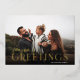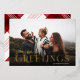 This simply designed Christmas holiday photo card features elegant foil typography reading, "Season's Greetings." A dark gradient photo overlay towards the bottom allows the text to stand out against your photo. The size and placement of the overlay can be adjusted as needed through the customisation tool. The back contains a painted plaid design in red.