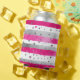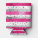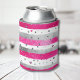 Elegant Valentine Pink Silver Hearts on Striped Can Cooler