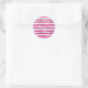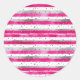 Elegant Valentine Pink Silver Hearts on Striped Classic Round Sticker
