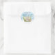 The sticker is made on wonderful paper and had no problem sticking to the bag that I purchased to put it on. I wanted to find a design that would be cute for the bride and groom and this one fit the bill as it has cute "bees" buzzing around and the wedding was taking place in a town called "Bee Cave". The packaging was great and protected the stickers. The website is easy to navigate and there are so many color choices. I had no problem finding a color that the bride was using on everything else selected. The design was adorable and there were many to choose from. You can make the figure as larger or smaller and you can place the photo and writting whereever you want to in the sticker. The printing is fabulous..better than expected.