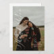 Express your heartfelt gratitude with our Elegant Vertical Script Photo Wedding Thank You Cards. These stunning cards feature a large "thank you" in black thin script, elegantly displayed in a vertical orientation. Personalise the front with your names and wedding date in sleek black sans-serif typography, set against a full couple photo background. The back of the card offers ample space for a personalised wedding thank you message on a crisp white background. These custom wedding thank you cards are the perfect way to show appreciation to your guests for their love and support on your special day.