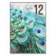 Elegant Vibrant Teal Peacock Feather Wedding Table Number