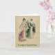Two elegant Victorian Ladies dressed in colourful gowns. Greeting: Congratulations or Customise with your own personalised greeting. Image from The Designer Magazine - November 1899 overlapped on a shabby old grunge end paper scanned from an old vintage 1867 era book. Light yellow or beige in colour.