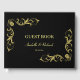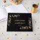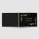 This wedding guest book features modern ornaments with Victorian accents with boasts of intricate vine swirls. Your names and the event date appear in simple font against a daring background.