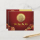 Golden horse in a golden circle with “Year of the Horse” + “Happy Vietnamese New Year” in English and Vietnamese on a delicate dark red background with peonies. Design on horizontal holiday postcard with the same golden “cut-out paper” of the horse and texts to personalise on the back. You can choose red “cut-out paper” instead of gold by clicking on the button: "Edit usng Design Tool". Matching greetings card and more... Perfect for Vietnamese Horse New Year 2026.